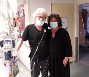 (op de foto was ik nog in het ziekenhuis, nu inmiddels verlost van alle draden, weer kilootje zwaarder thuis, en mijn haren geknipt!)